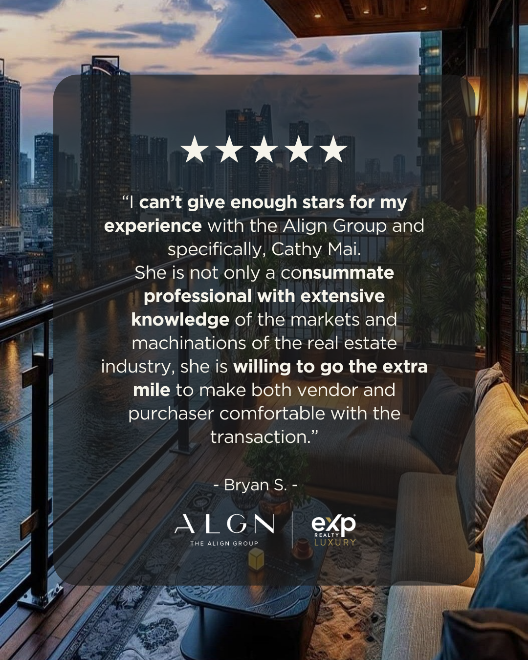 “Thank you so much, Bryan for the kind compliment and amazing review for Cathy and The Align Group! We are so honoured to be able to help!”
